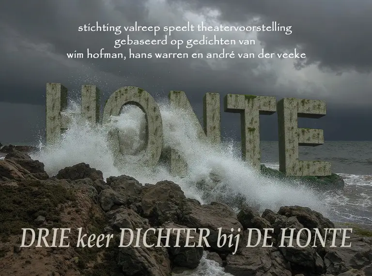 Een theatervoorstelling, gebaseerd op gedichten van 3 Zeeuwse dichters, die nauw verbonden zijn met de Westerschelde: Wim Hofman uit Vlissingen, Hans Warren uit Borssele en André van der Veeke uit Terneuzen. Die binding geldt het water, maar ook de schorren, de scheepvaart, de grauwe luchten, de industrie. Vijf acteurs, ondersteund door een gitarist, spelen met gedichten Ze onderzoeken hoe jeugd en ouderdom, verlangen en teleurstelling, onrust en aanvaarding te verbeelden zijn. Heeft de Honte, die wispelturige watermassa, invloed op de ziel – of is het slechts decorum ?